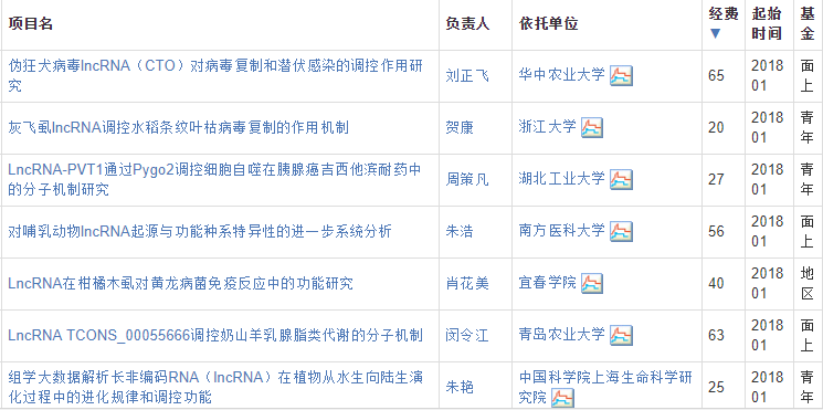 然而,已经有很多在农业领域的科研单位将研究的焦点放在了lncRNA上。举个例子,以lncRNA为关键词,查询科学生命领域的国家自然基金项目,前七条中居然有四条和农牧业相关。比例是不是出乎意料的高呢?