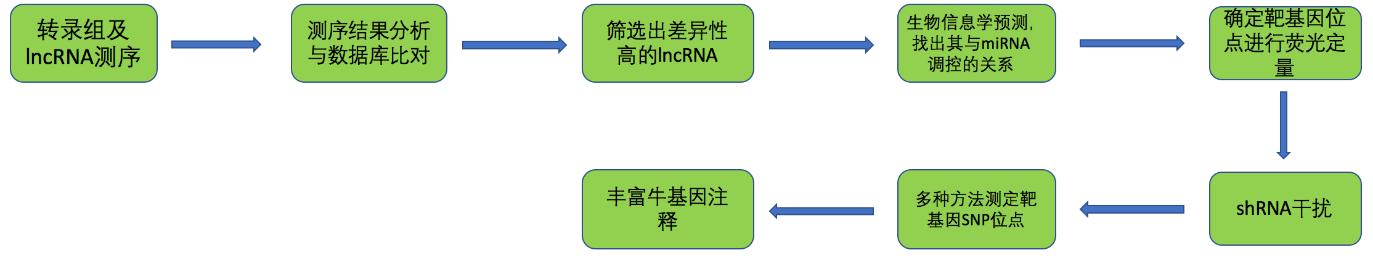 【方法】研究中运用了RNA高通量测序技术、cDNA末端快速扩增、RNA荧光原位杂交、基因过表达、RNA干扰、双荧光素酶报告系统、基因定点突变等技术探索了一个lncRNA;ADNCR调控牛脂肪细胞分化的机制。